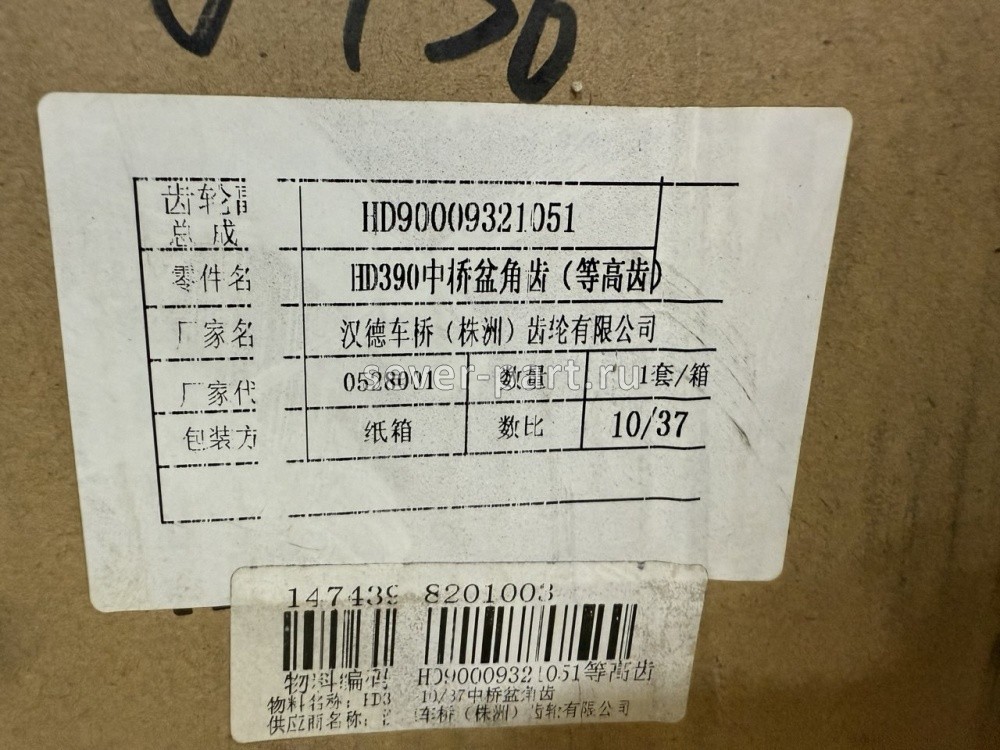 Пара конических шестерен i 3,7, Z 37:10 средний мост Hande на КамАЗ 65206 / Hande HD90009321051